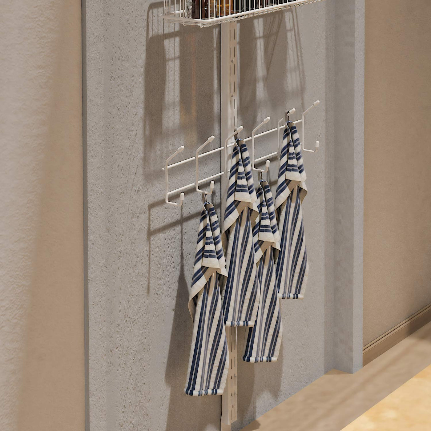 • Perchero con 6 ganchos: con conexión al eje central, perfecto para colgar prendas, bolsos o accesorios.
